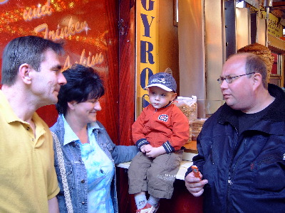 Hier sieht man den Gyros-Budenchef Eckhard (rechts) mit dem auszubeuten--den Polen Pawel (samt Familie)
